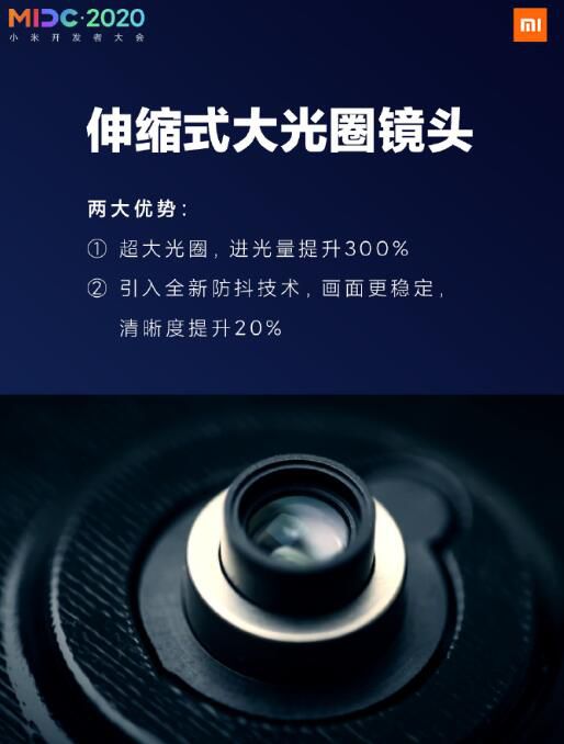 MIDC 2020小米开发者大会上,小米发布了伸缩式大光圈镜头技术,另外曾学忠透露,未来小米手机将会量产这一创新技术。