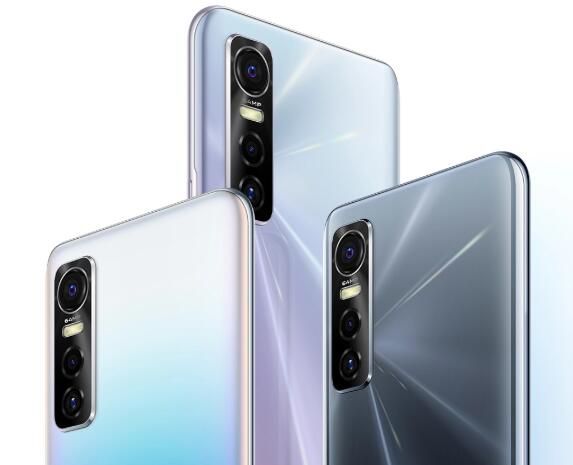 从机身背部来看,vivoS7e的摄像头采用的是竖排设计,有幻砂星海、银月和黑镜三种颜色设计,而vivoS7的摄像头则是采用的矩阵设计,也有三种配色,分别是莫奈漫彩、爵士黑和月光白。
