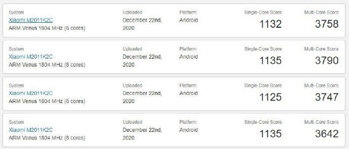 我们已经知道小米这次将会首发搭载高通骁龙888处理器,而且在GeekBench上,也已经出线了小米11的跑分结果。单核1135分,多核3642分,对比此前高通公司自行测试的骁龙888跑分来看,跑分几乎一模一样。