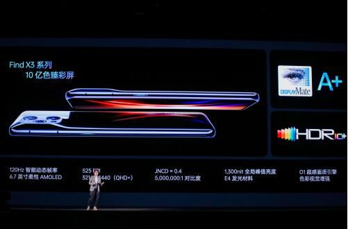 好的影像自然需要好的显示,一块极致的屏幕自然少不了。OPPO Find X3系列采用6.7英寸、分辨率为3216*1440的三星E4材质AMOLED屏幕,屏幕刷新率高达120Hz 并支持硬件级智能动态帧率,最新的LTPO混合背板技术,可 以做到刷新率的无感调整,流畅度功耗表现样样出众。PPI高达525,原生10亿色显示,自动调整屏幕亮度达到8192级,屏幕全局峰值亮度高达1300nit,JNCD≈0.4等等,同时还拥有O1超感画质引擎,被DisplayMate授予A+评级。